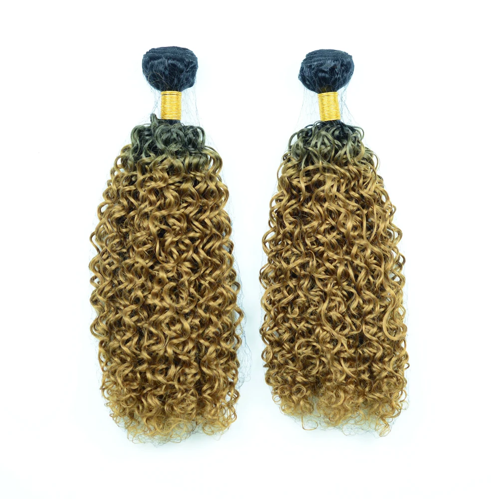 "Adorable Heat Resistant Fiber Jerry Curl Synthetic Hair Weaves,Hair Bundles Ombre Two Tone Gold Color T1b27 Kinky Curl 100g" * Buy Now Just For 10$