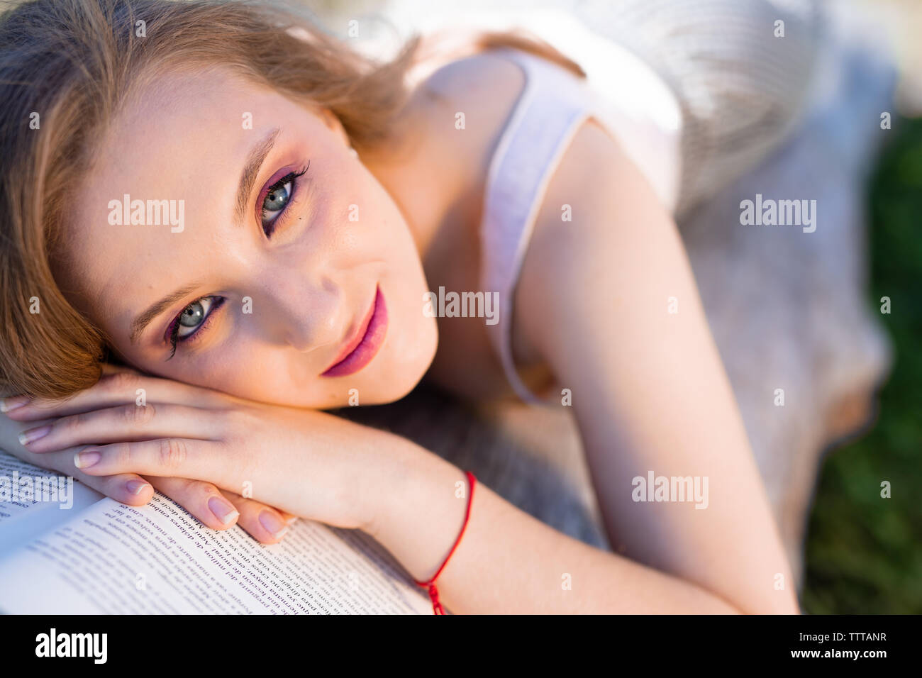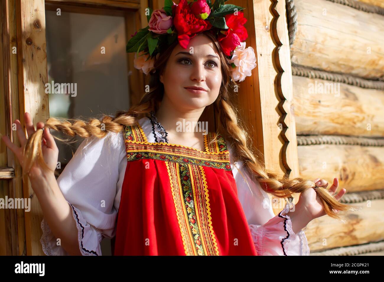 Adorable blonde russe avec des tresses