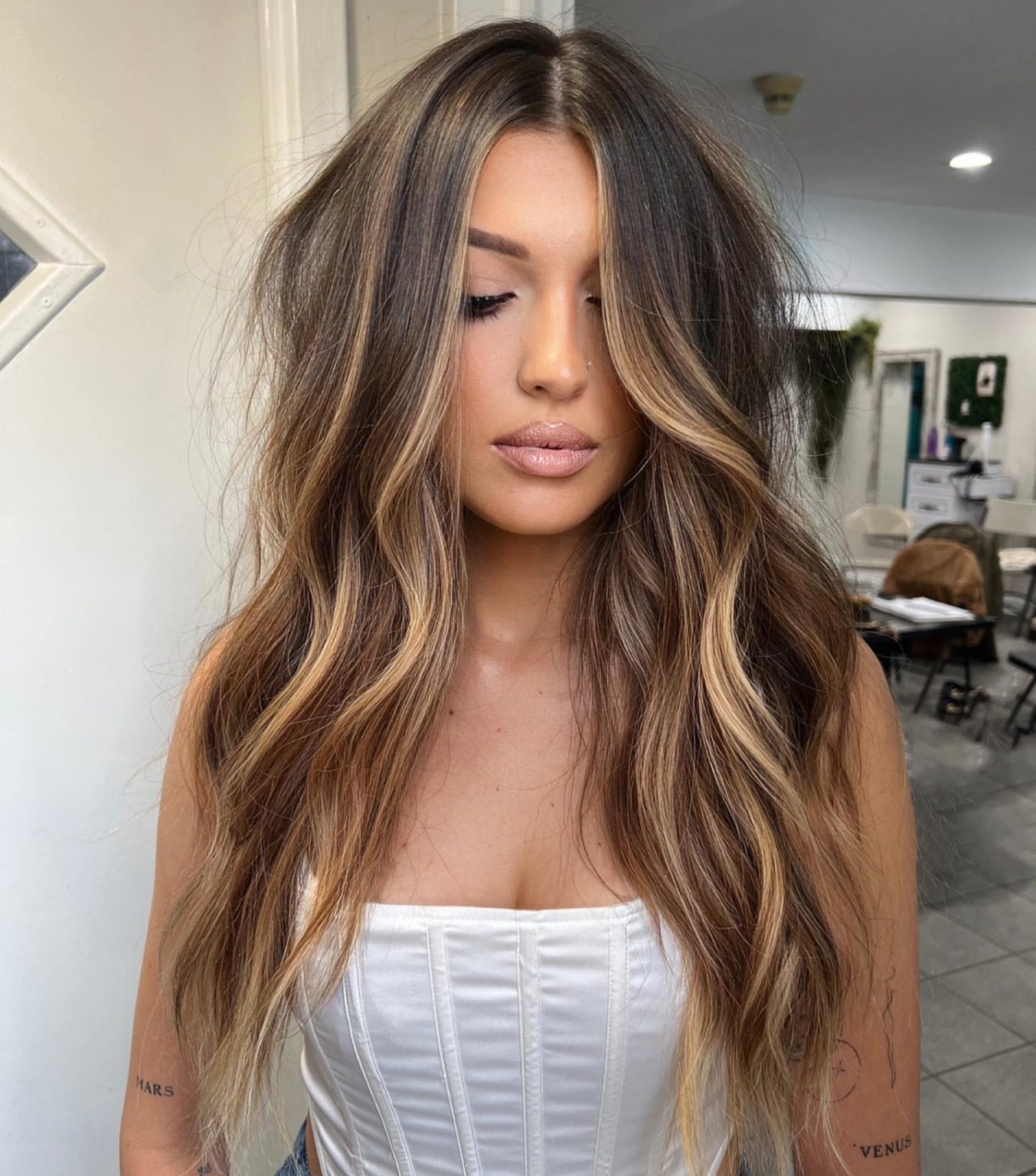 Adorable golden-haired honey drilled