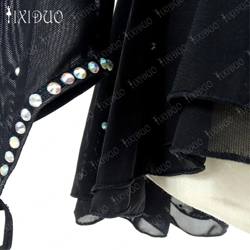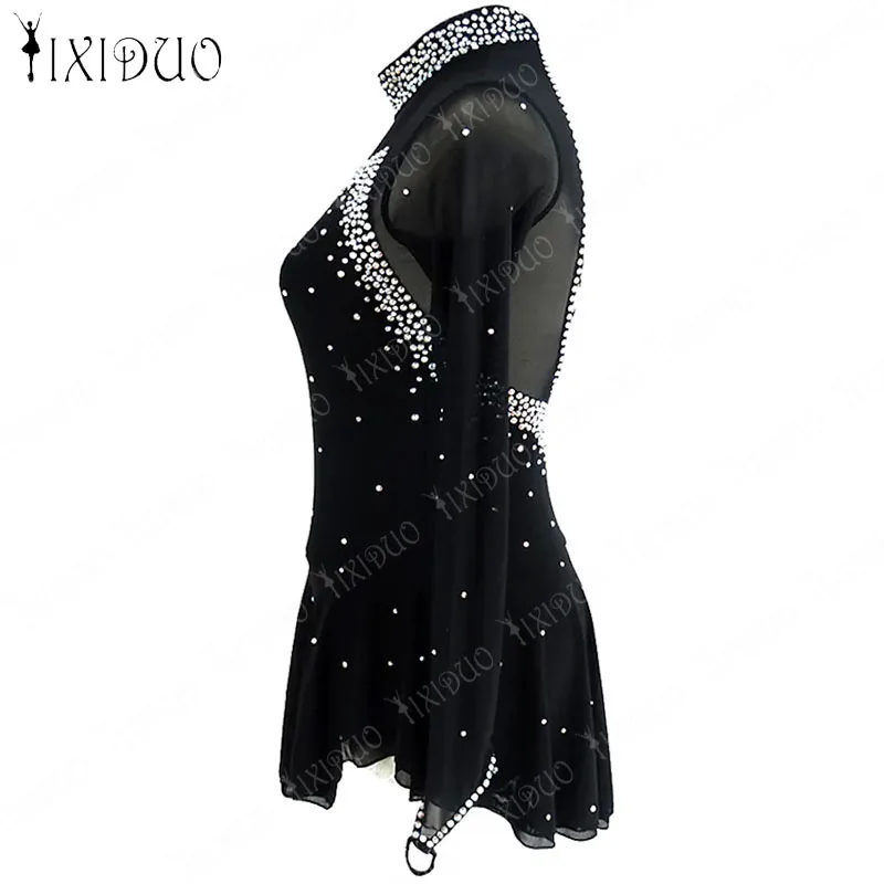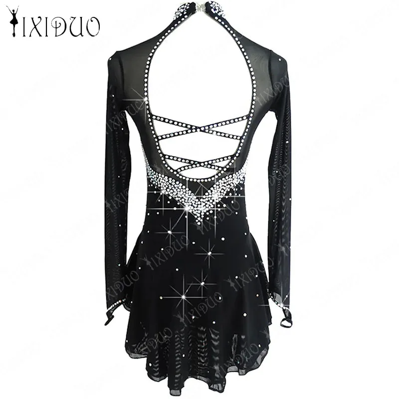 Adult Kids Ice Figure Skating Dress Rhinestone Crystal Long Sleeve Open Back Mesh Spandex Stretchy Performance Wear Girls Compet - Купить с бесплатной доставкой