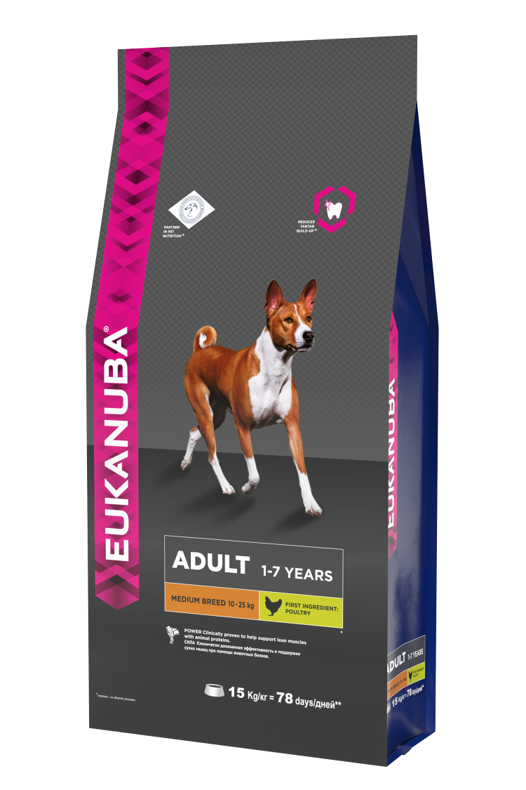 Сухой корм для взрослых собак средних пород, 10–25 кг