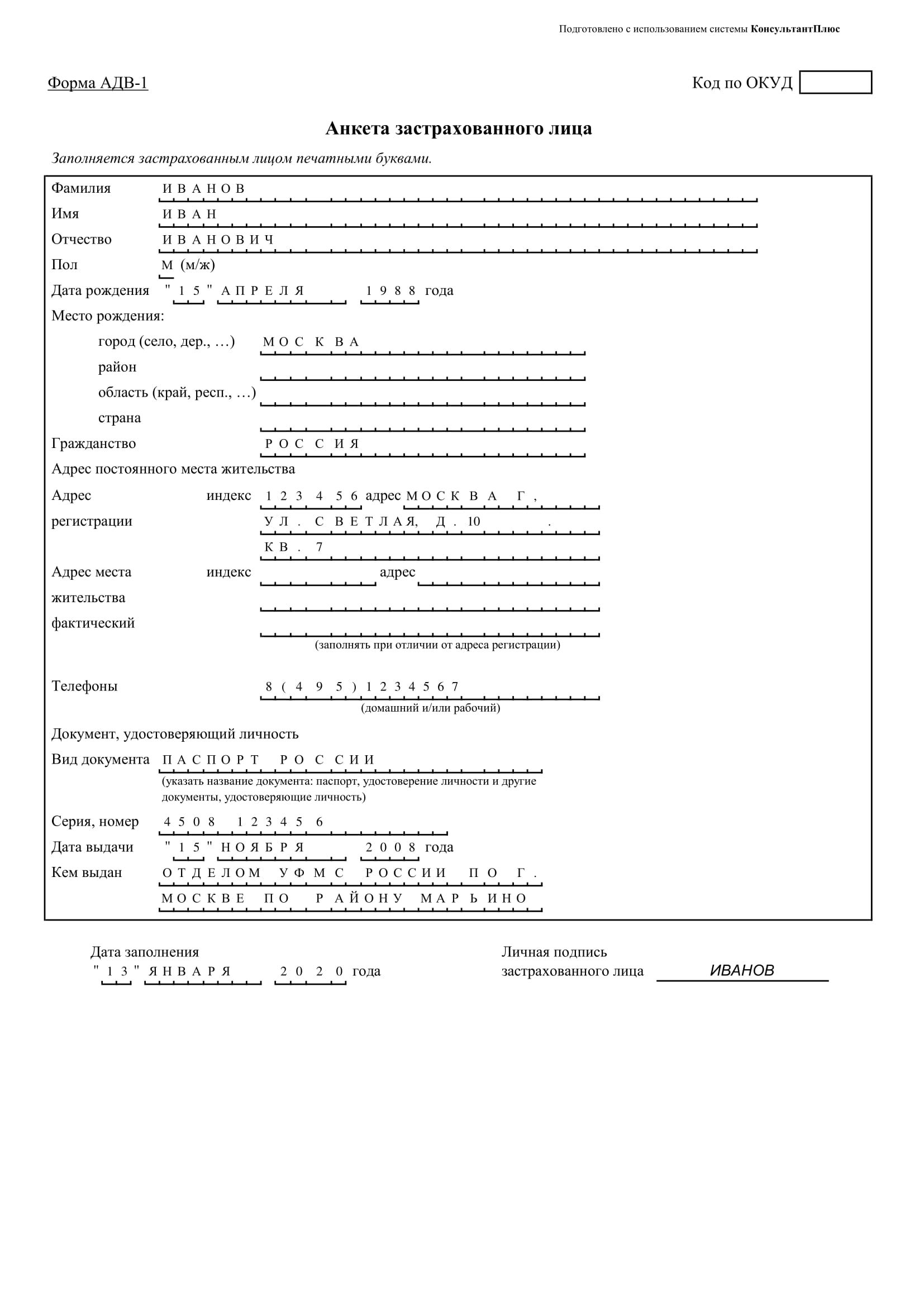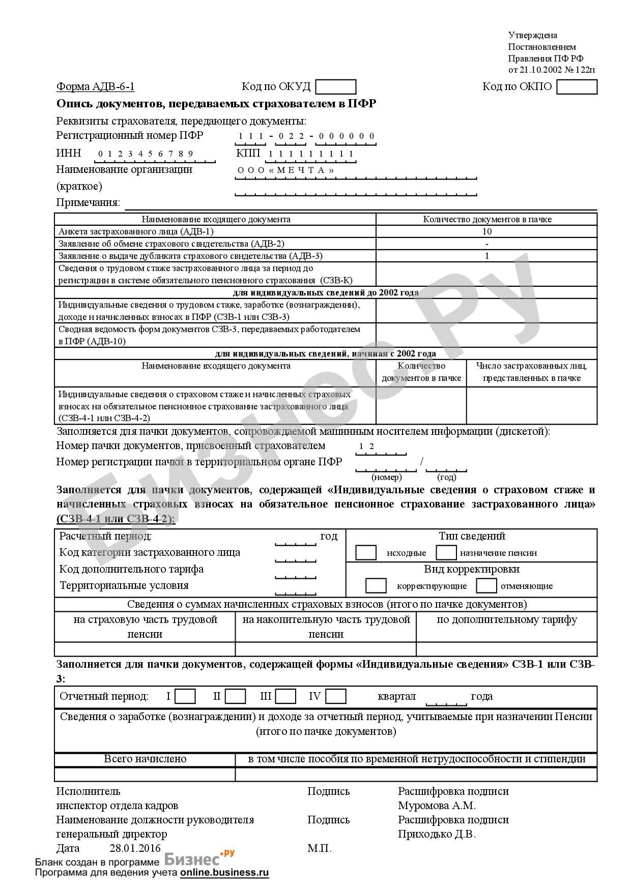 Адв 1 заполнить