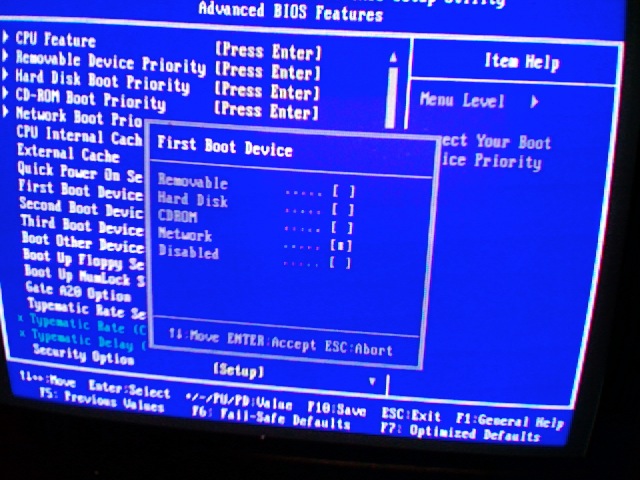 Advanced bios menu