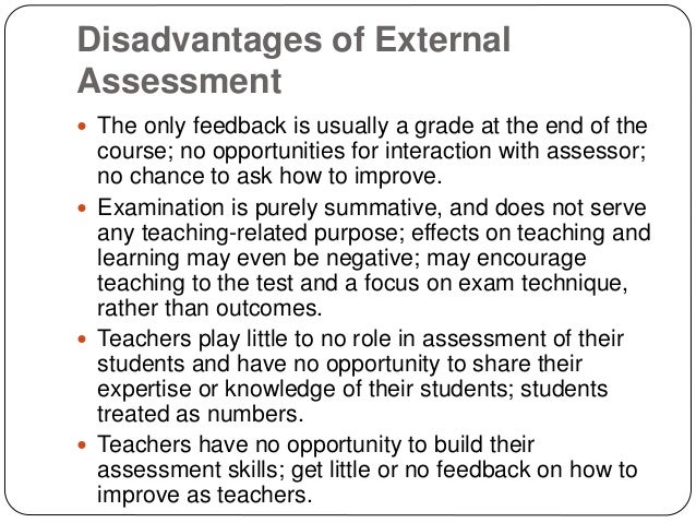 Advantages of Exams . Self Analysis of One's Own Abilities: With examinations , a person is able to know his level of Performance and Knowledge . Tool for Learning and Working: Examination provides encouragement to people for Learning and Working . Spirit of Competition: Examinations also create a sense of Competition which pushes the limit of a . . .