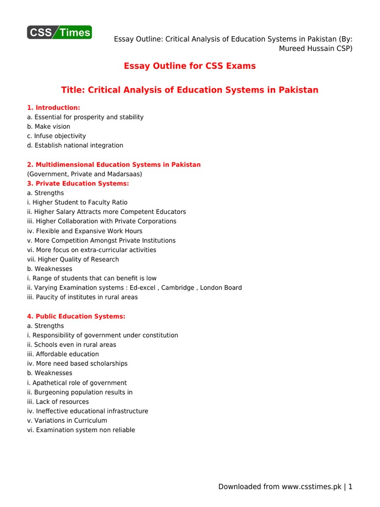 Essay on Our Examination System in Pakistan with . . .