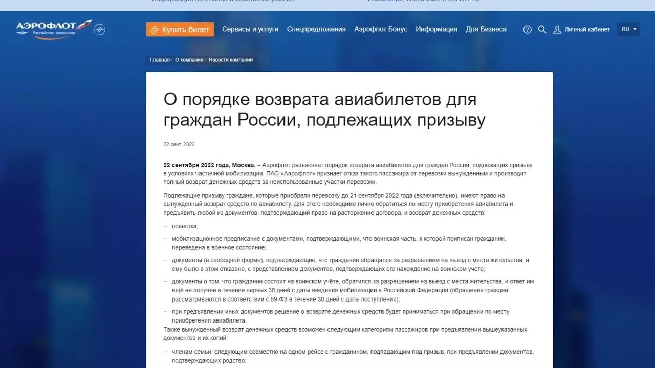 Аэрофлот обмен и возврат