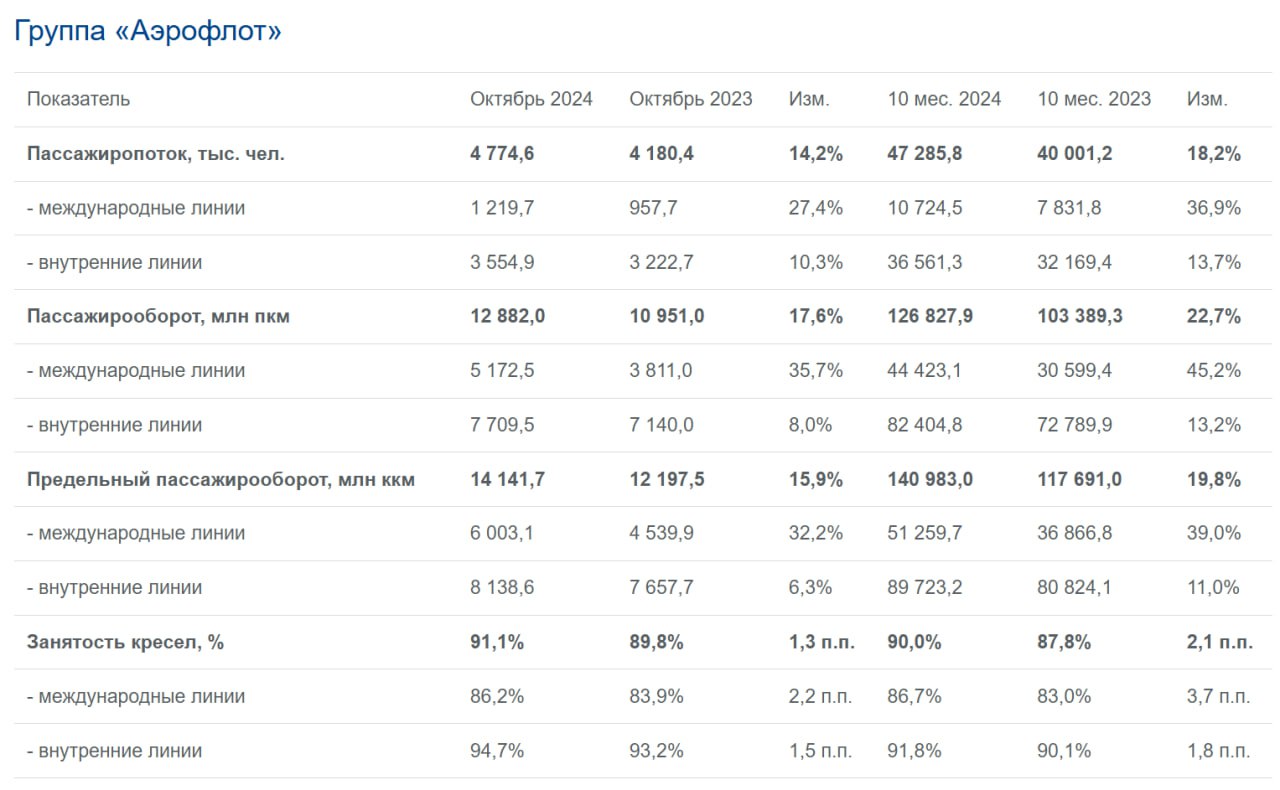 Аэрофлот пассажиропоток