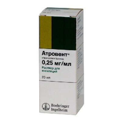 В России ипратропия бромид зарегистрирован под торговым названием атровент, иправент в лекарственной форме аэрозоль для ингаляций . Задать свой вопрос специалисту » Приведенная информация предназначена для медицинских и фармацевтических специалистов . Наиболее точные сведения о препарате содержатся в инструкции, прилагаемой к упаковке производителем .