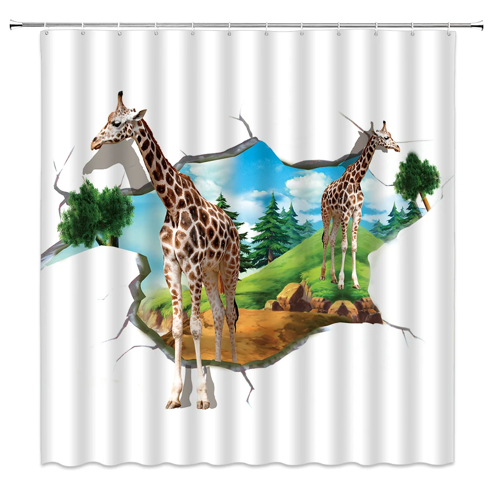 «African Animal Pattern Shower Curtain Giraffe Colorful Butterfly Ocean Scenery Bathroom Decor Waterproof with Hook Bath Curtains» по лучшей цене на рынке! Всего за 11$ (1045рублей)
