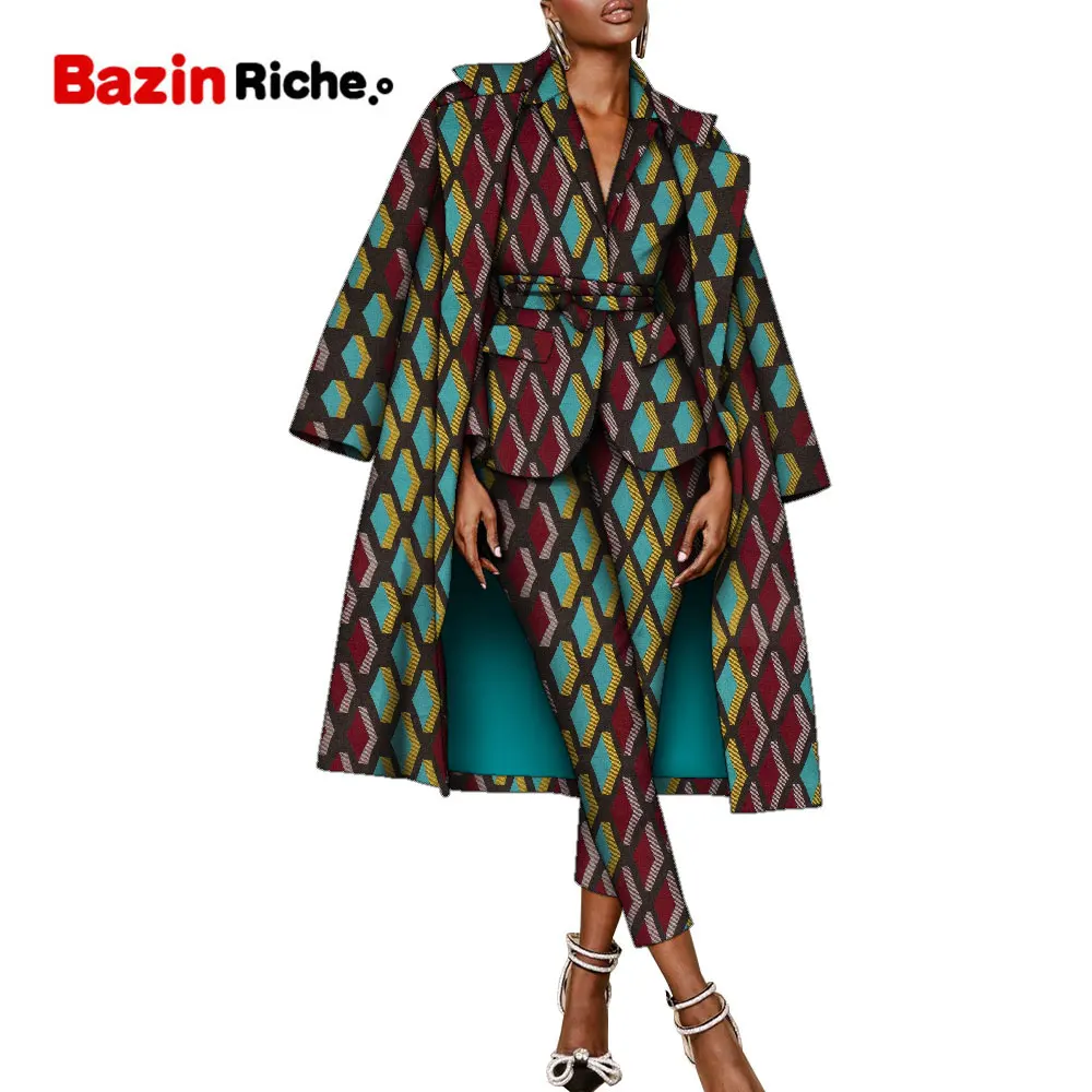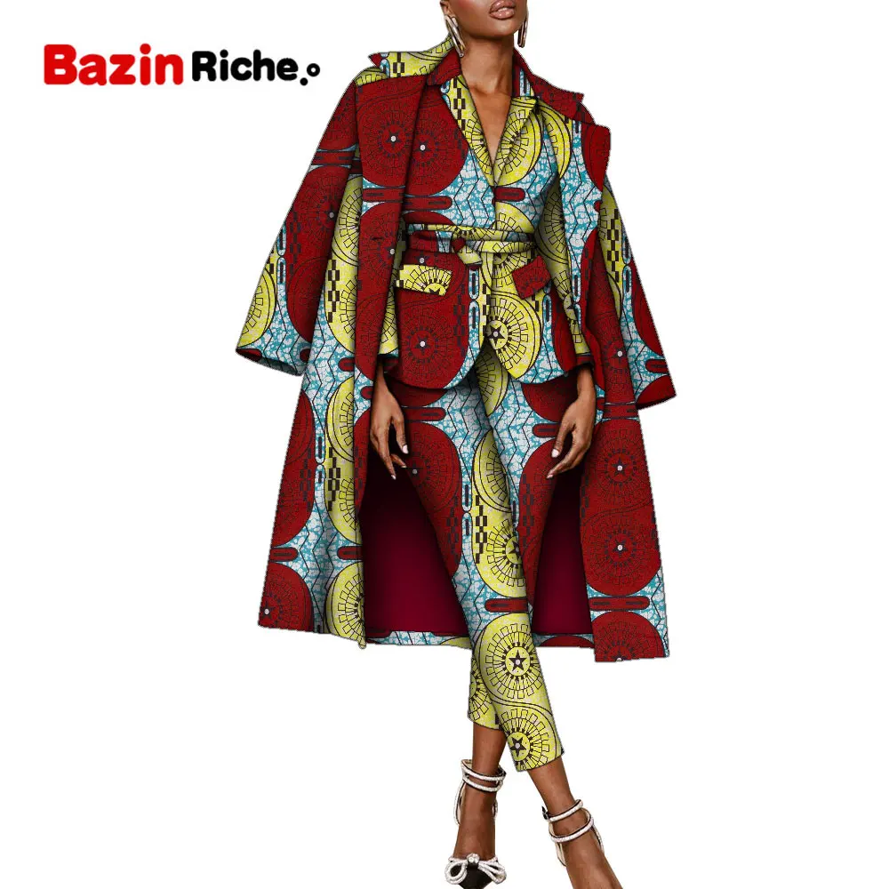 "African Suits for Women Dashiki Printed Jackets Pant and Long Coat Three Piece Set Slim Fit Outfits with Belt Two Pockets WY9861" * Buy Now Just For 99$
