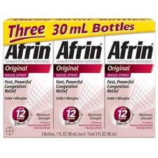 Африн е спрей за нос на марката Schering-Plough, който се прилага за симптоматично облекчаване на назалната конгестия, причинена от сенна хрема, настинка и синузит . Може да се приема на всеки 12 часа .