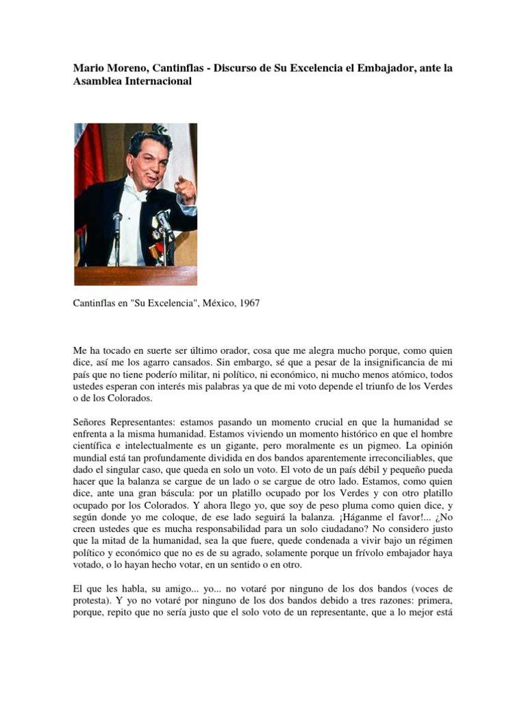 Mario Fortino Alfonso Moreno Reyes (12 August 1911 - 20 April 1993), known by the stage name Cantinflas, was a Mexican comedian, actor, and filmmaker .He is considered to have been the most widely-accomplished Mexican comedian and is celebrated throughout Latin America and in Spain as a popular icon .His humor, loaded with Mexican linguistic features of intonation, vocabulary, and syntax, is . . .