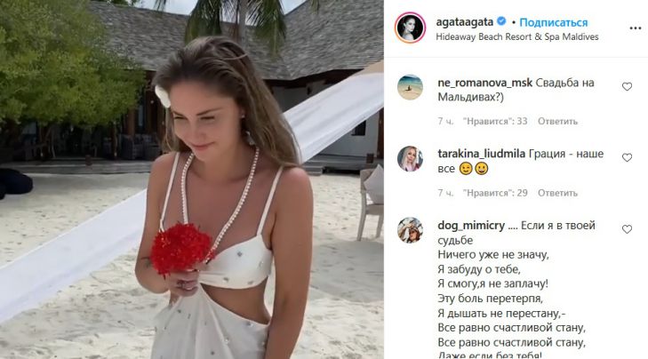 Слухи о том, что Агата Муцениеце вышла замуж, наконец-то подтвердились . Готовится свадьба Агаты Муцениеце, а медовый месяц, по заявлению счастливой пары, пройдёт на Мальдивах .