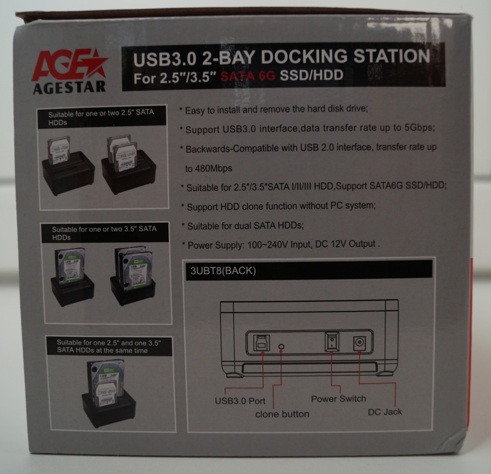 Agestar USB3 .0 Docking Station Easy to install and remove the hard disk drive Support USB3 .0 interface, data transfer rate up to 5Gbps Backwards-Compatible with USB2 .0 to SATA interface, transfer rate up to 480Mbps Suitable for 2 .5/3 .5" SATA I/II/III HDD /SSD Support HDD clone function without PC system Suitable for dual SATA HDD Power Supply: 100-240V input, DC 12V output Operation system . . .
