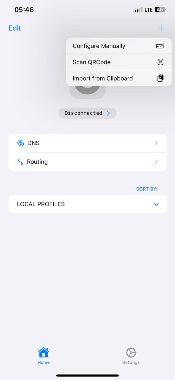 3.وارد برنامه شوید، "+" را انتخاب کنید و مطابق تصویر از منوی نمایان شده "Configure Manually" را انتخاب کنید.
