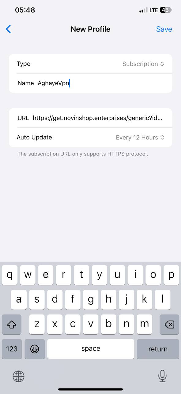 Name: نام دلخواه یا AghayeVpn