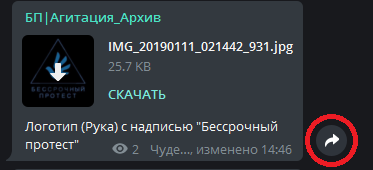 Составляем описание поста и сохраняем его в избранных, публикуем файл без сжатия в канал с архивом (@BP_Agitation_Backstage)