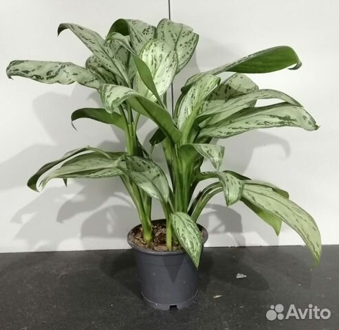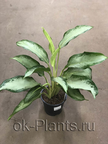 Аглаонема Мария Кристина . Растение имеет выгнутые наружу крупные листья серебристо - серого цвета . Растение достаточно высокое, может достигать 70 см . в высоту .