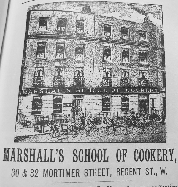 Агнесс родилась в 1855 году, умерла в 1905, и за 50 лет успела очень много. Основала собственную кулинарную школу, написала четыре поваренные книги, издавала собственный еженедельный журнал The Table, управляла агентством по найму домашней прислуги, запатентовала конструкцию супербыстрой мороженицы, объездила всю Англию с мастер-классами. The Times в 1887 году рапортовал, что на ее презентации присутствовало около 600 человек, и «миссис Маршалл всецело захватила их внимание на два часа, развлекая и обучая в одно и то же время». Кстати, Маршалл формат публичных кулинарных мастер-классов для продвижения своих книг тоже фактически изобрела. Журнал и школа, кстати, проработали до ВМВ.