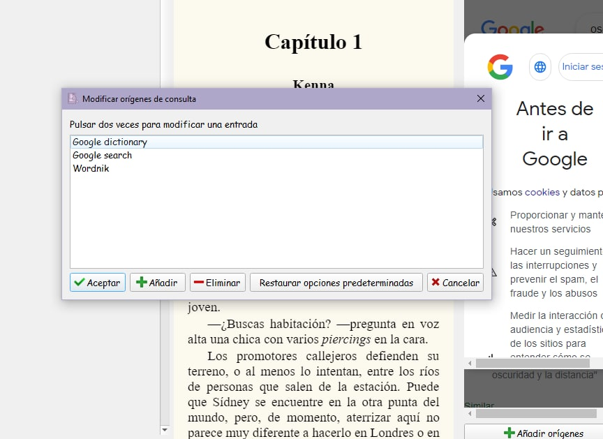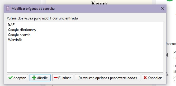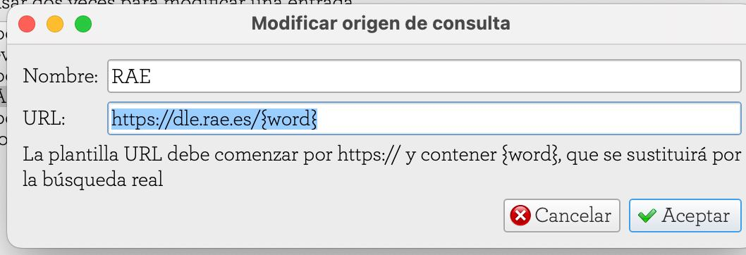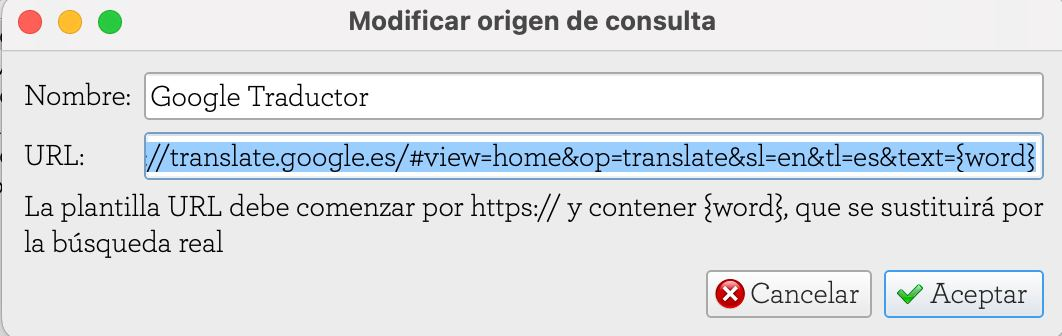 Dale click en "añadir" y ahí pegas el link de la fuente de búsqueda del diccionario que prefieras