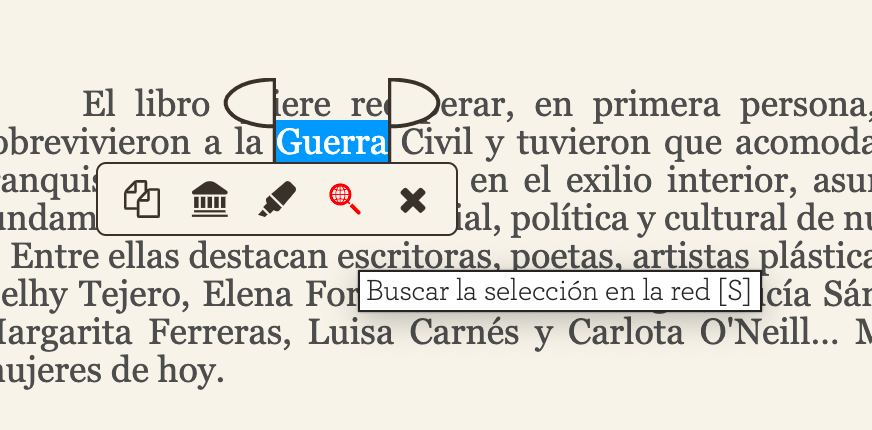 Acabo de comprobar que seleccionando una palabra en el lector de Calibre (Ebook-Reader) si pinchas en la lupa (la que está en rojo) te lleva al navegador que uses directamente (o presionando la letra «S») Y desde allí puedes traducir o ver el significado de la palabra que desees.