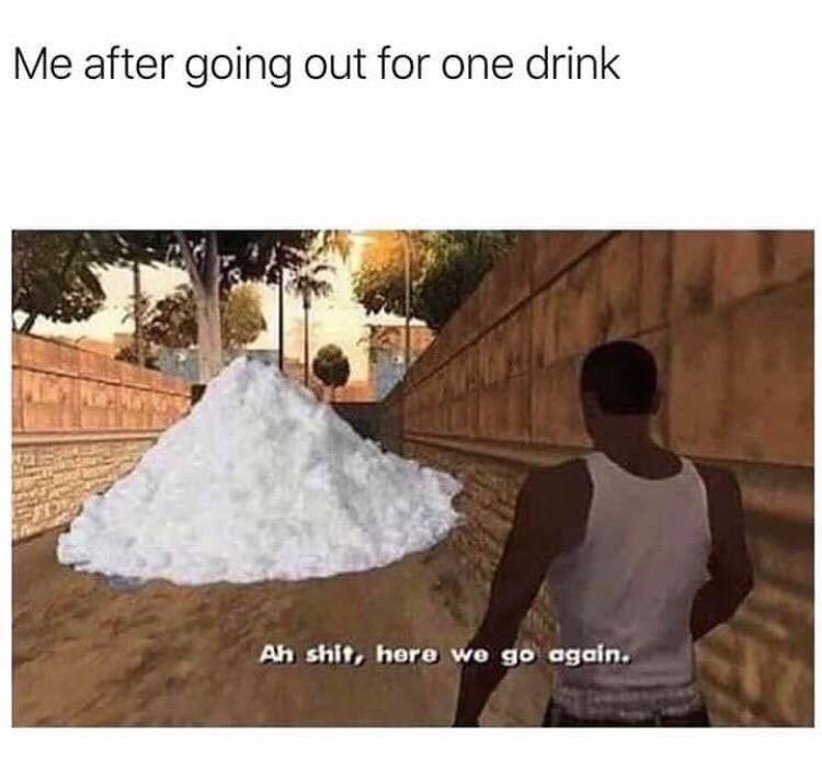 "Ah shit, here we go again", a phrase uttered by GTA San Andreas character CJ, has become the internet's new favourite meme . People on Twitter are sharing a clip of the GTA character walking down an alleyway saying "ah shit, here we go again" and it will perfectly sum up your reaction to all things repetitive .