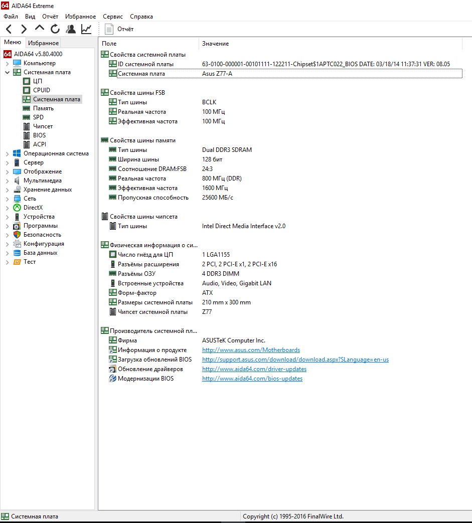 Aida64 материнская плата