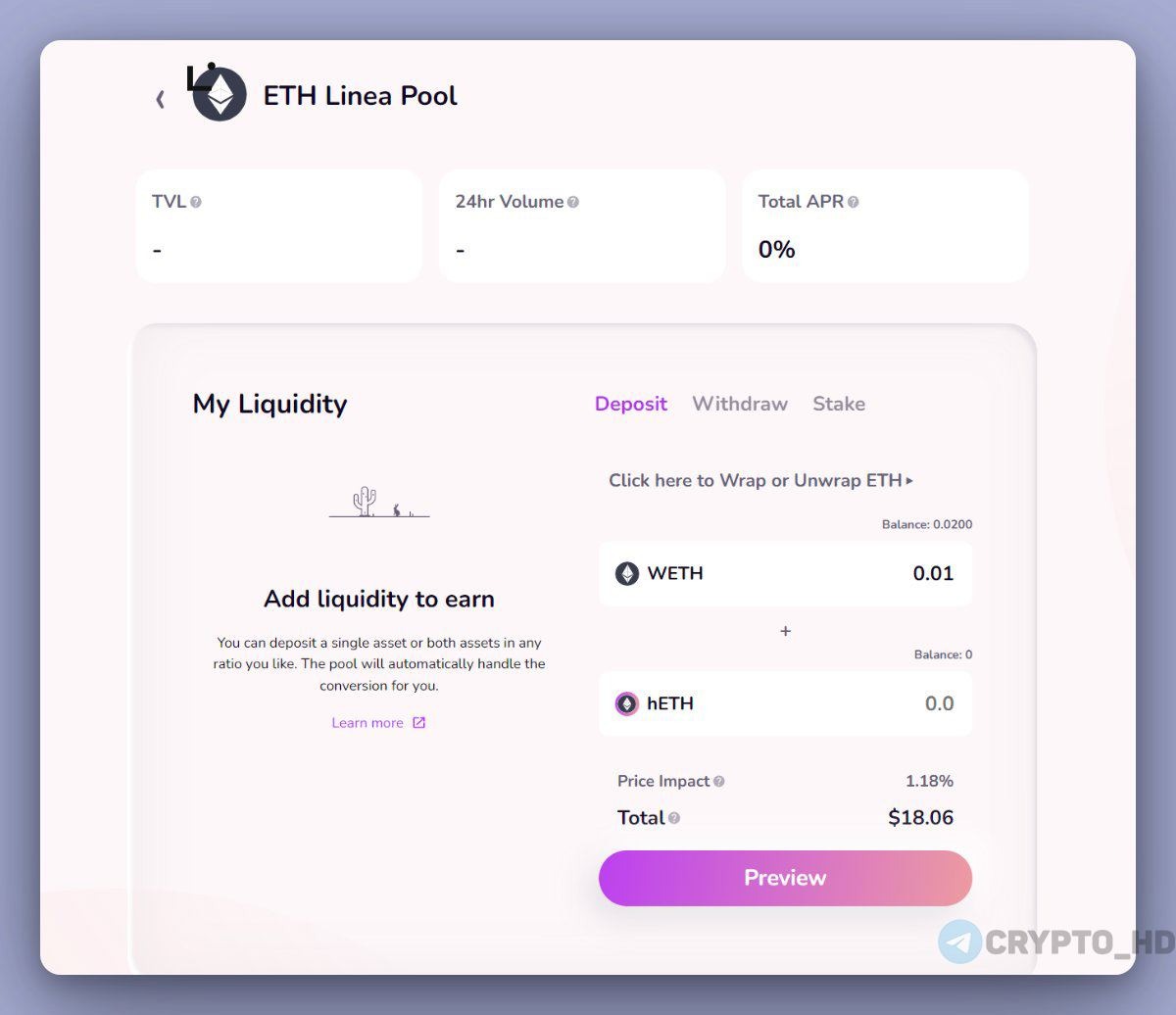 5. И добавьте ликвидность в пул: https://goerli.hop.exchange/#/pool/deposit?token=ETH&sourceNetwork=linea