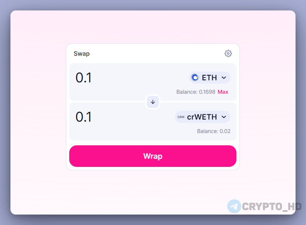 4. Как только вы получите ETH в тестовой сети Linea (после обмена, согласно пункту 3), то вам необходимо обернуть эти ETH в crWETH по ссылке: https://swap.goerli.linea.build/#/swap