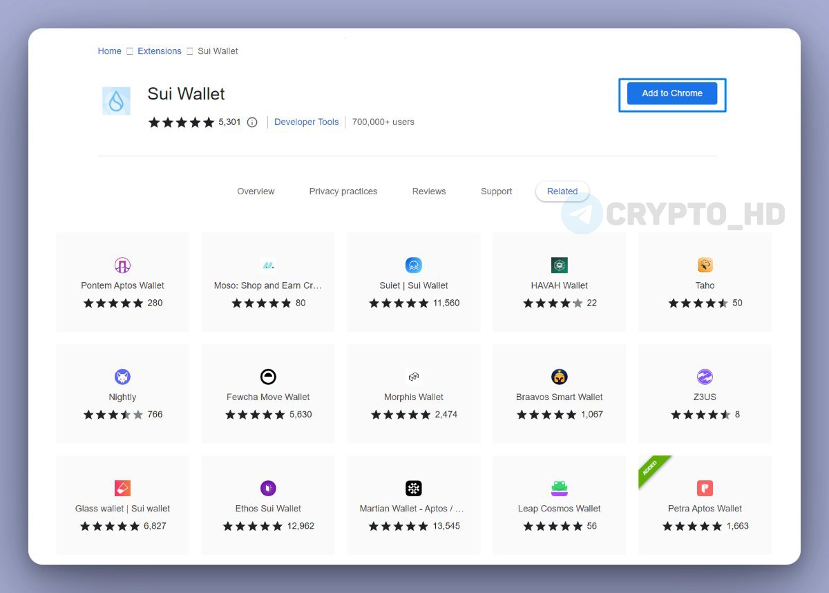 - Загрузите кошелек SUI здесь: https://chrome.google.com/webstore/detail/sui-wallet/opcgpfmipidbgpenhmajoajpbobppdil (кошелек-расширение для Google Chrome)