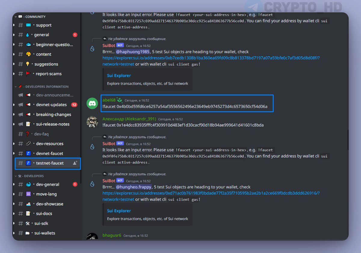 Внимание! Testnet SUI сильно перегружен! Если что-то (или ничего) не получается, то пробуйте в другой день, в разное время суток.