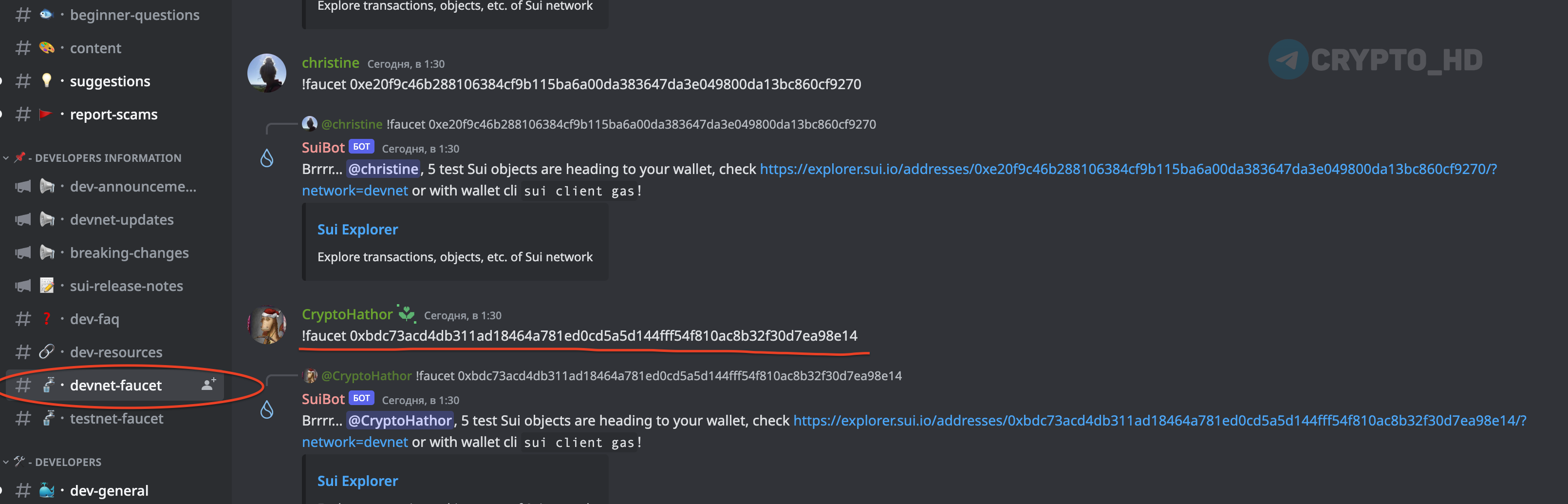 3. Скопируйте адрес своего кошелька и запросите дополнительные токены в Discord: - https://discord.com/invite/sui