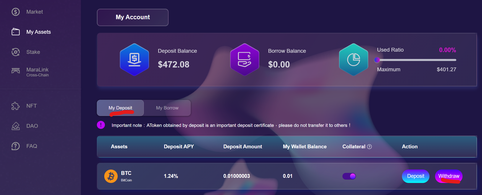Finally, we withdraw our deposited $BTC.