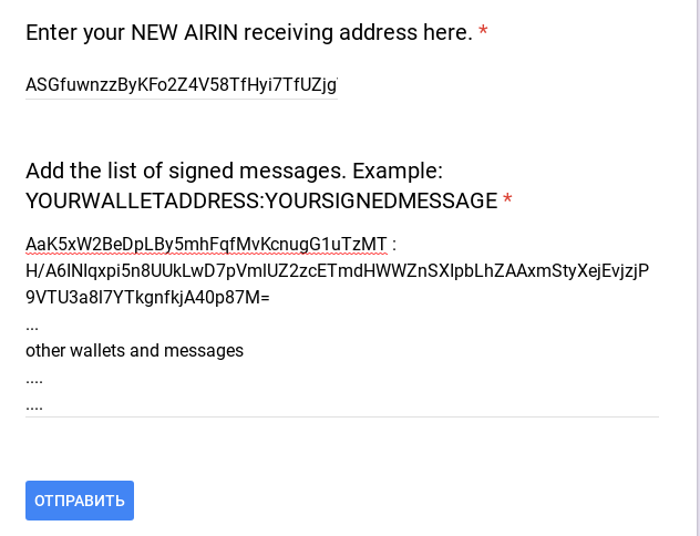 When filling out the form, in the last field, we indicate: the address from which you signed: a signed message