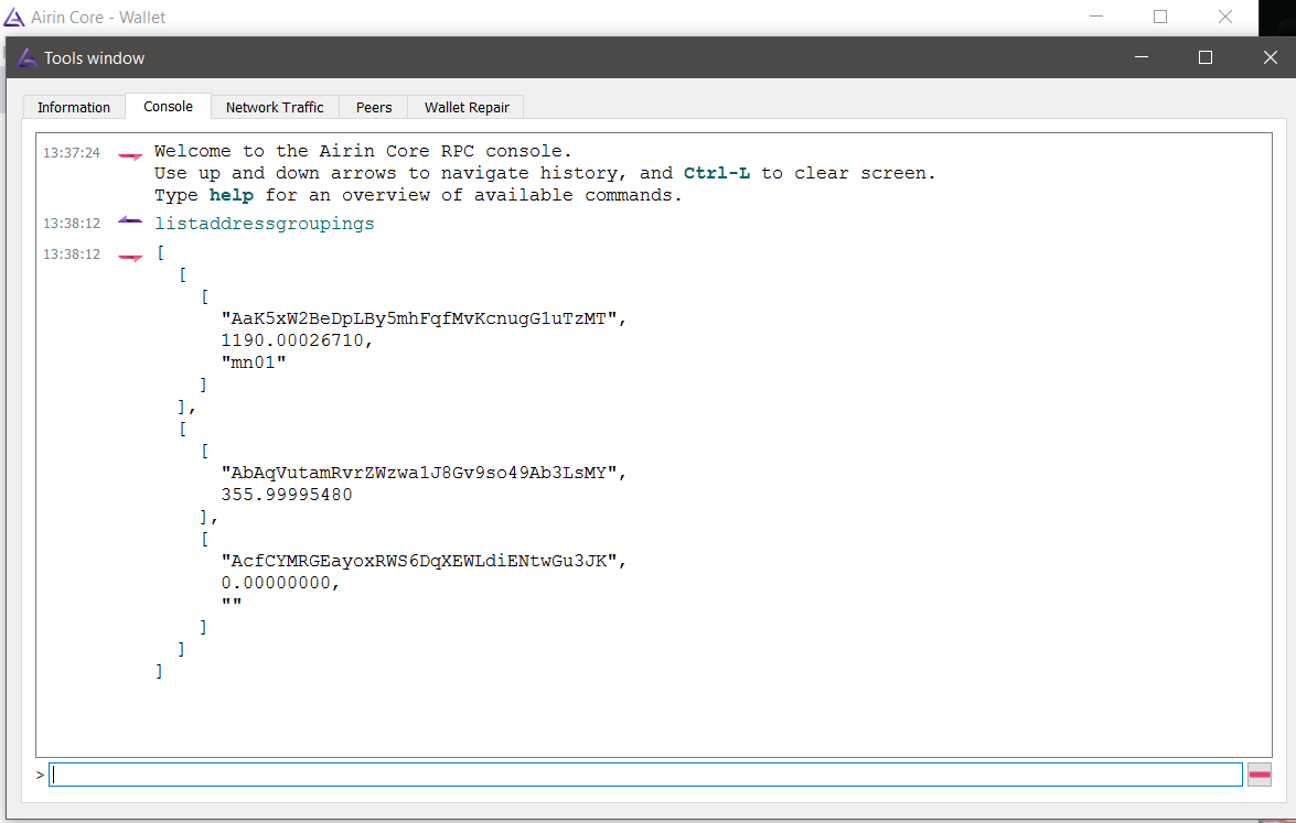 4) This will give you a full list of coin balance in each address.