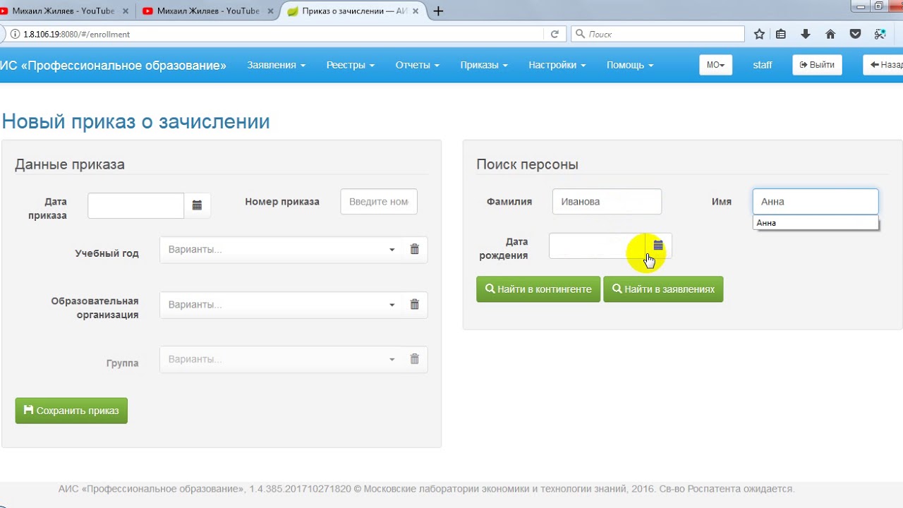Аис контингент журнал