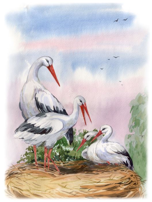 Аисты Картинка Рисованная