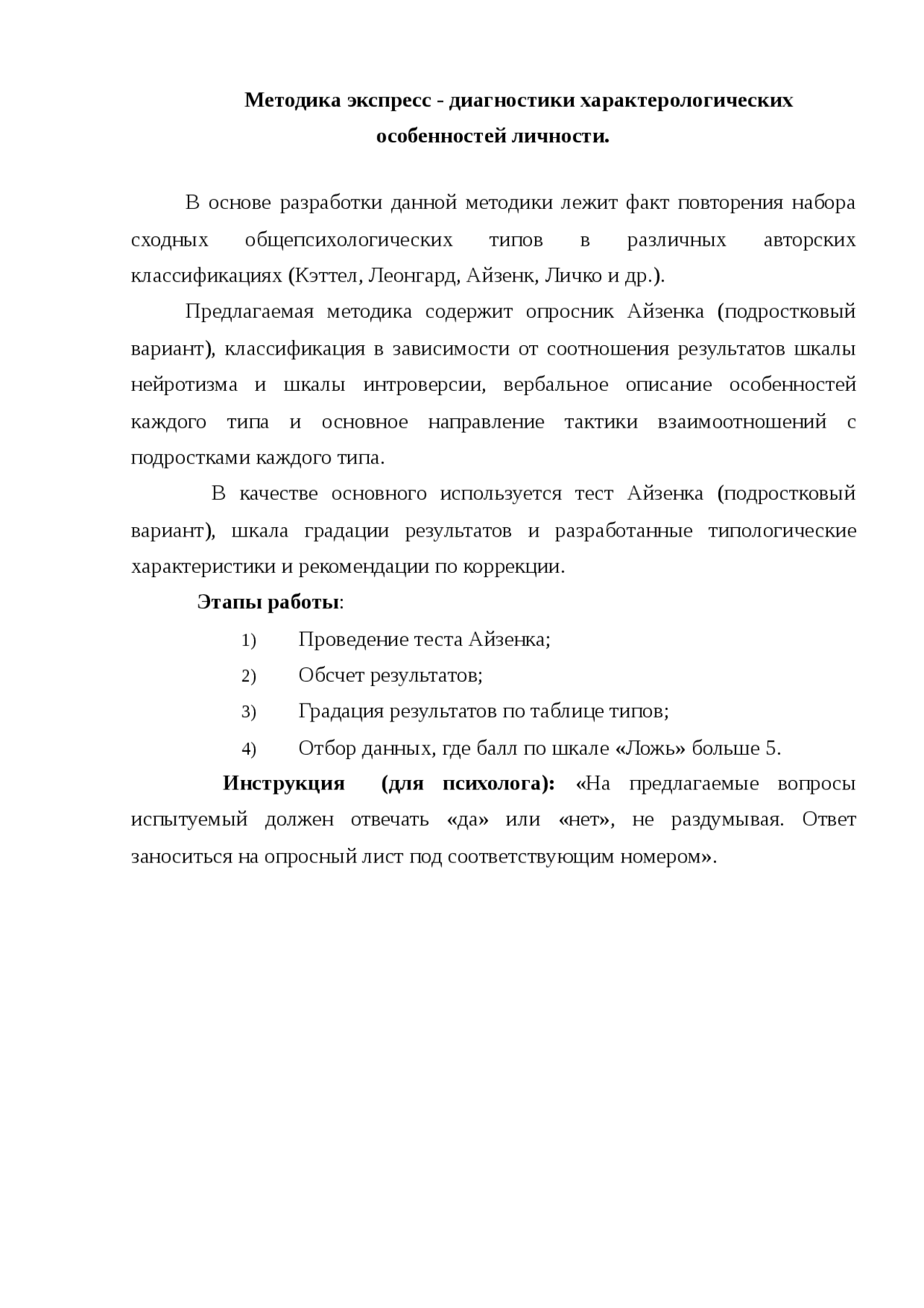 Айзенк экспресс диагностика характерологических особенностей
