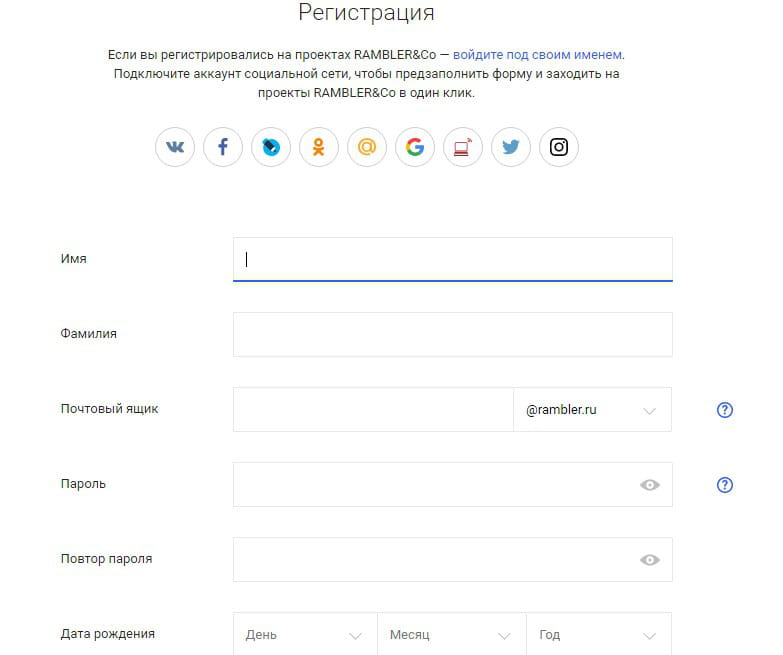 Аккаунты рамблер почты
