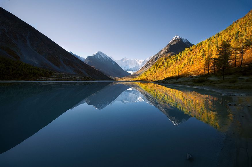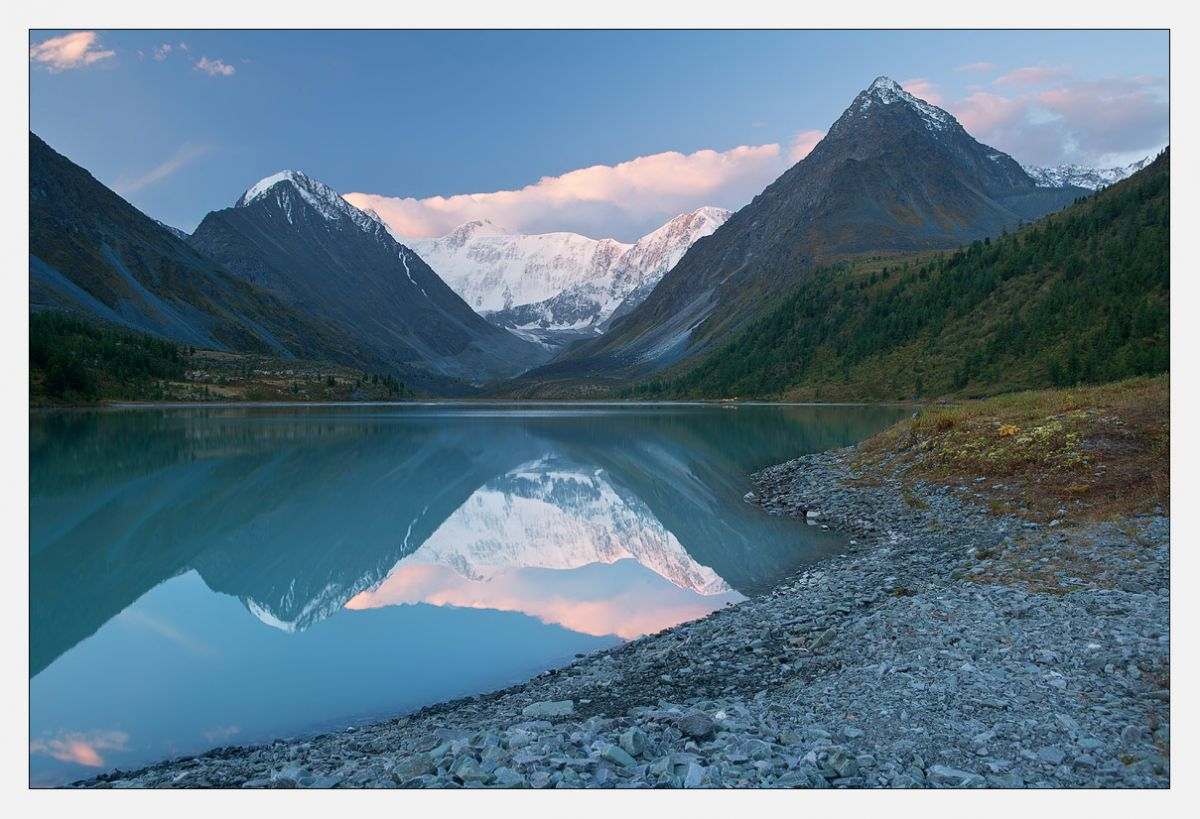 Аккемские озера - два зеркала, в которые смотрится гора Белуха. Они находятся в Усть-Коксинском районе, в верховьях «белой реки» или, по-другому, Аккем. Сюда от села Тюнгур ведет извилистая дорога длиной 40 км.Северный склон и вершина горы Белухи величественно отражаются в строгих ликах Аккемских озер. Сверкающие ледники целуются с прозрачной водой, а одетые в зелень лиственницы и кедры вместе с белоснежными эдельвейсами становятся свидетелями этого романа. Талые воды горных вершин питают озера, наделяя их способностью хамелеона: то они серые, то искрятся голубизной, а порой становятся матово-молочными в зависимости от угла обзора. Этот сказочный и в чем-то противоречивый пейзаж ежегодно магнитом притягивает путешественников.