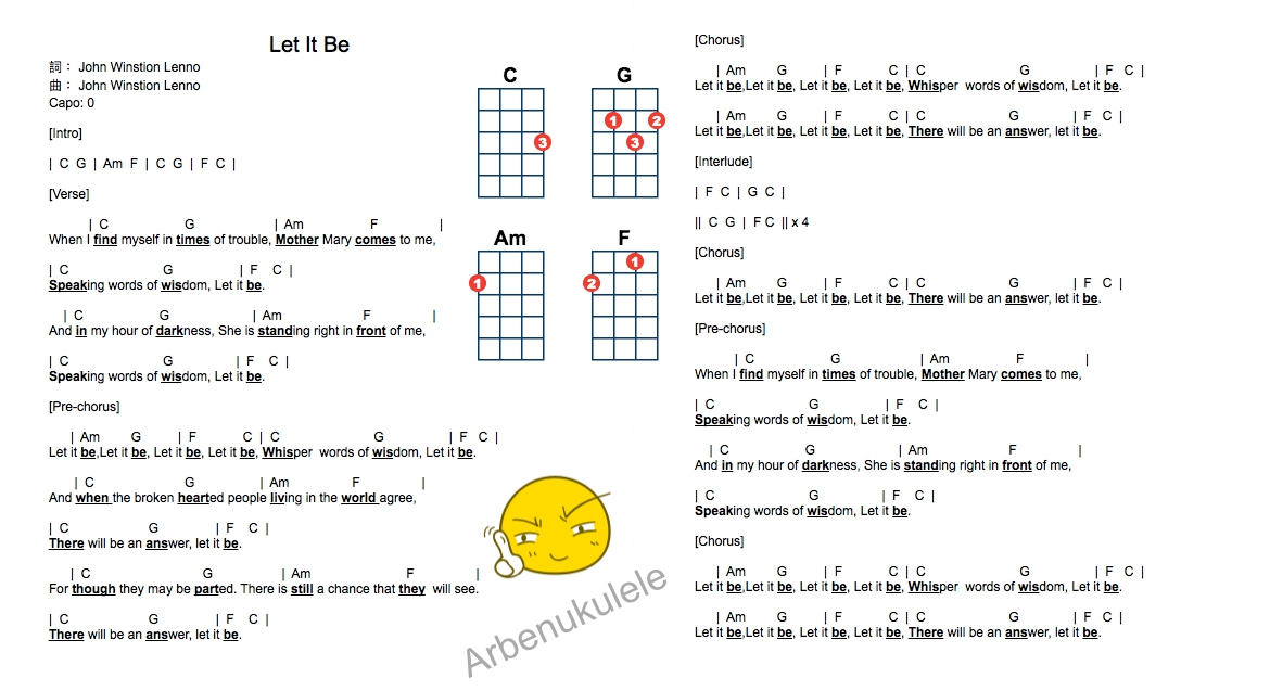 Аккорды для let it be