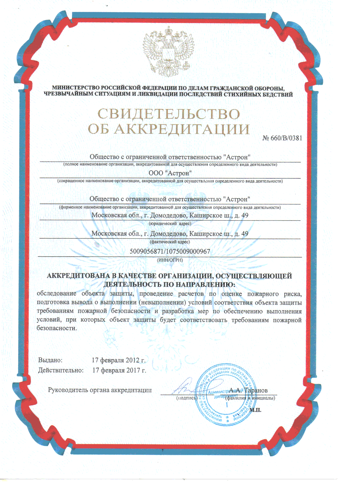 Аккредитован в спб