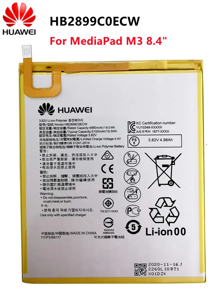 Аккумулятор батарея Huawei MediaPad T5 10 .0", MediaPad M3 8 .3" 4980 mAh AGS2-L09 AGS2-L03 BTV-DL09 BTV-W09 HB2899C0ECW Original PRC