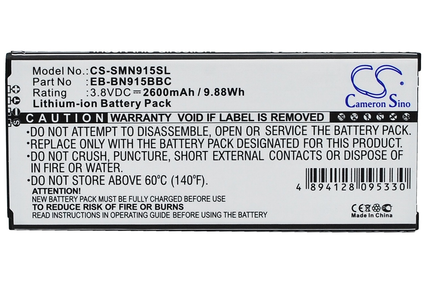 Модель телефона Samsung : Galaxy Note Edge N915 / Маркировка аккумулятора Samsung : EB-BN915BBC / Гарантия: 12 месяцев / Емкость: 3000 mAh / Тип: стандартные / Напряжение: 3 .7 V / Технология: Li-ion / Производитель: MOXOM . Аккумулятор Samsung Note Edge (N9150) / EB-BN915BBE (3000 mAh) 12 мес . гарантии + NFC .
