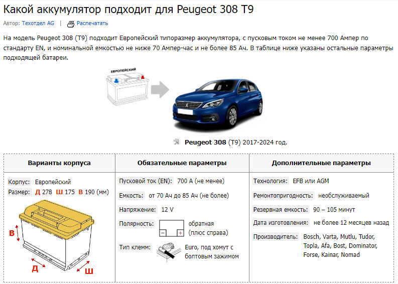 Аккумуляторы пежо типи