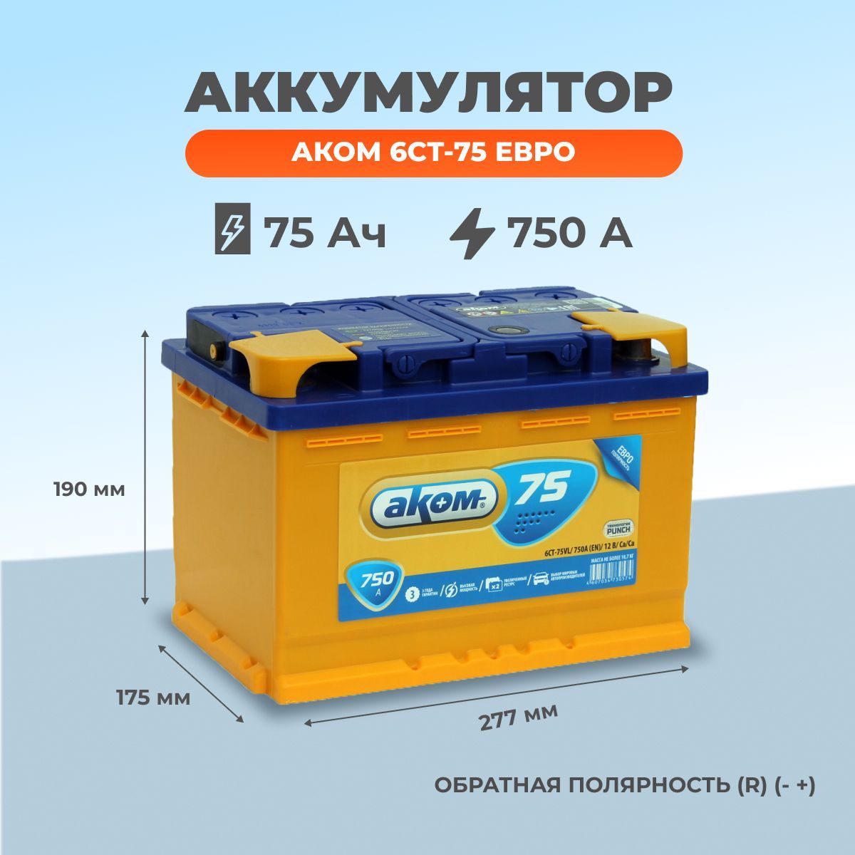 Akom 75 ач 750 а обратная полярность