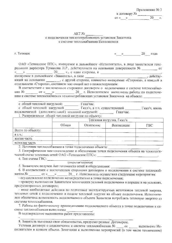 Акт о подключении к системе теплоснабжения