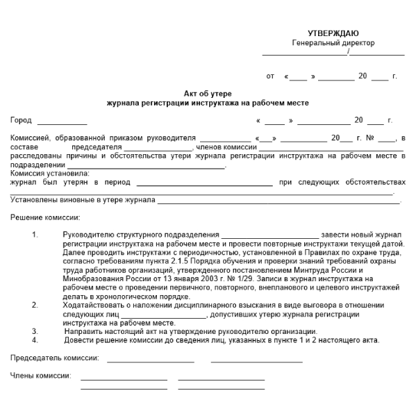 Акт первичного инструктажа 113 фото