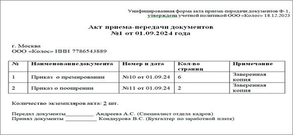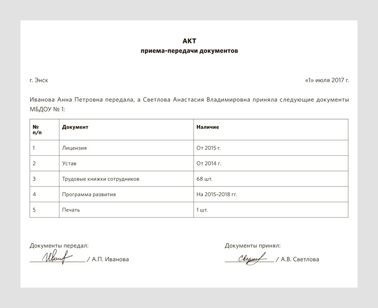 Акт приема лицензий