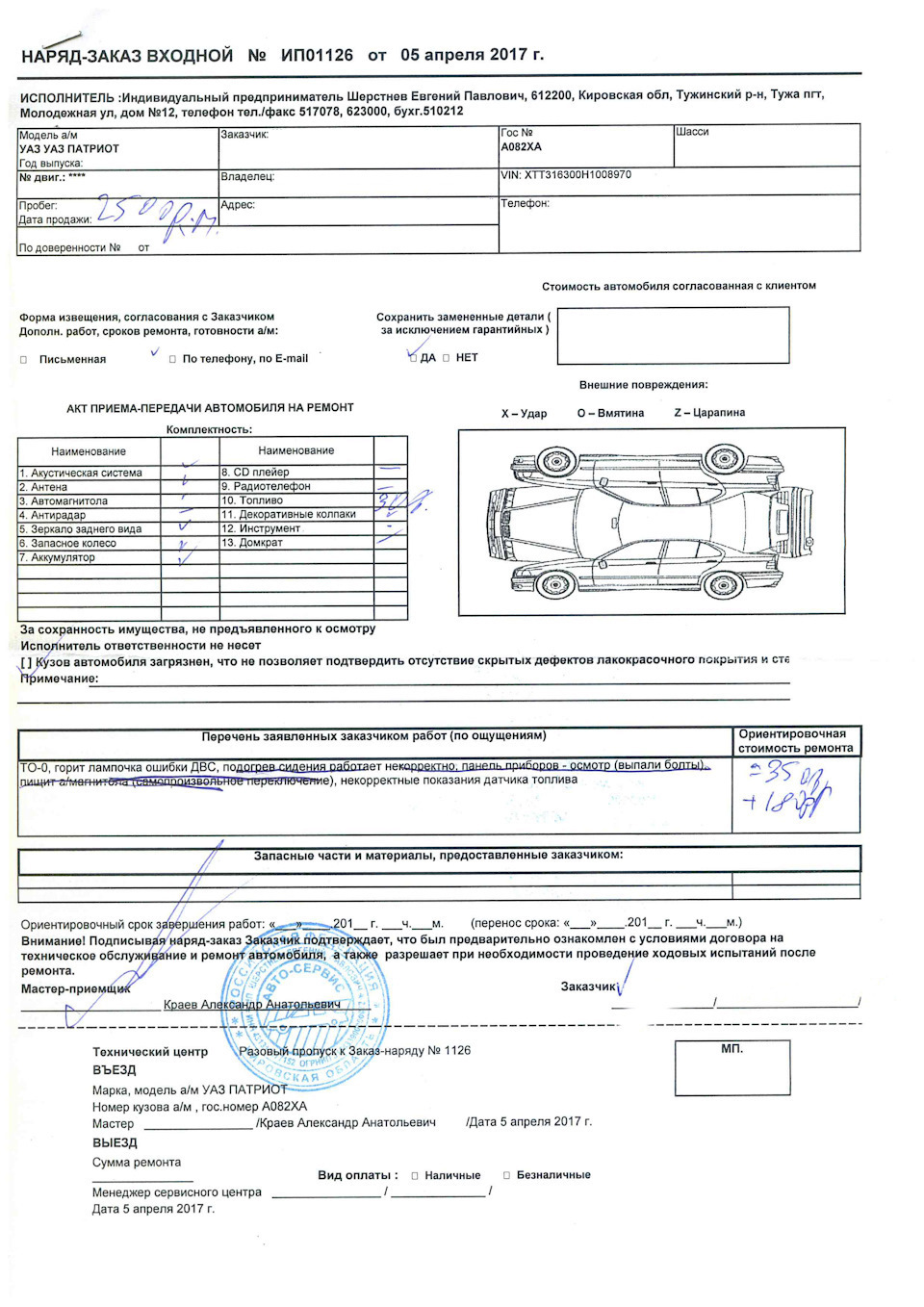 Акт приема передачи автосервис